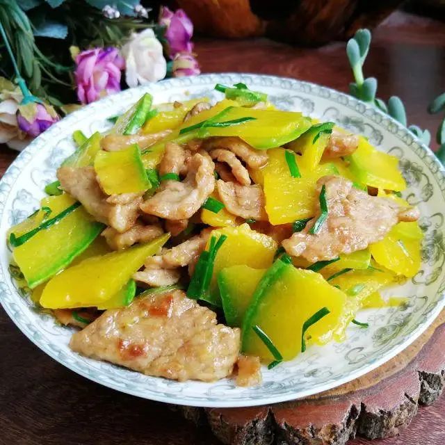 2.南瓜炒肉片(南瓜85g、肉片10g)