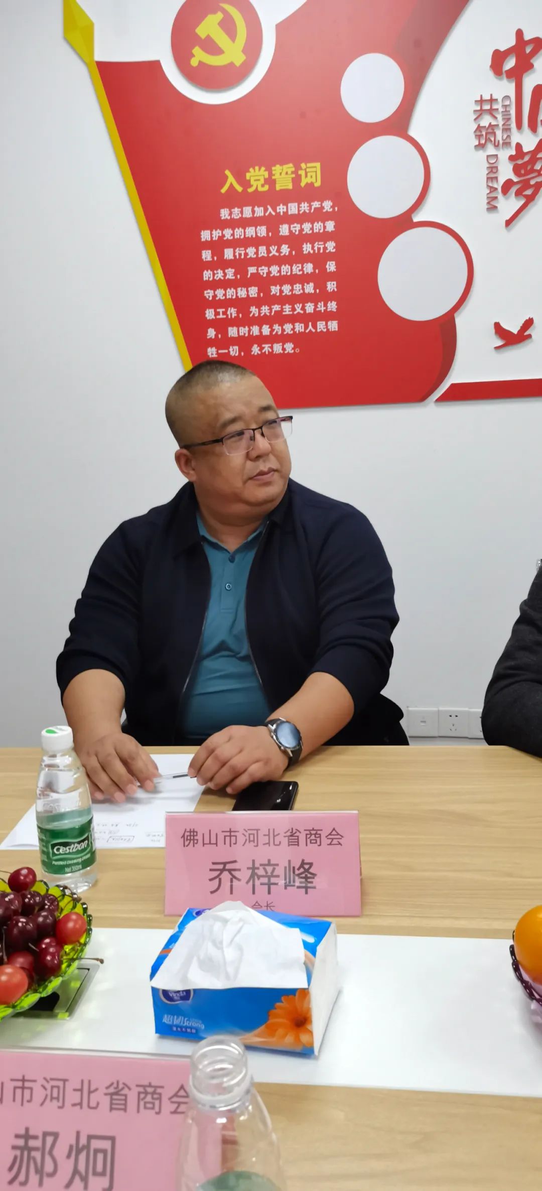 会长乔梓峰对蔡主席的到来表示热烈欢迎和对佛山市河北省商会工作的支持和厚爱表示衷心的感谢!