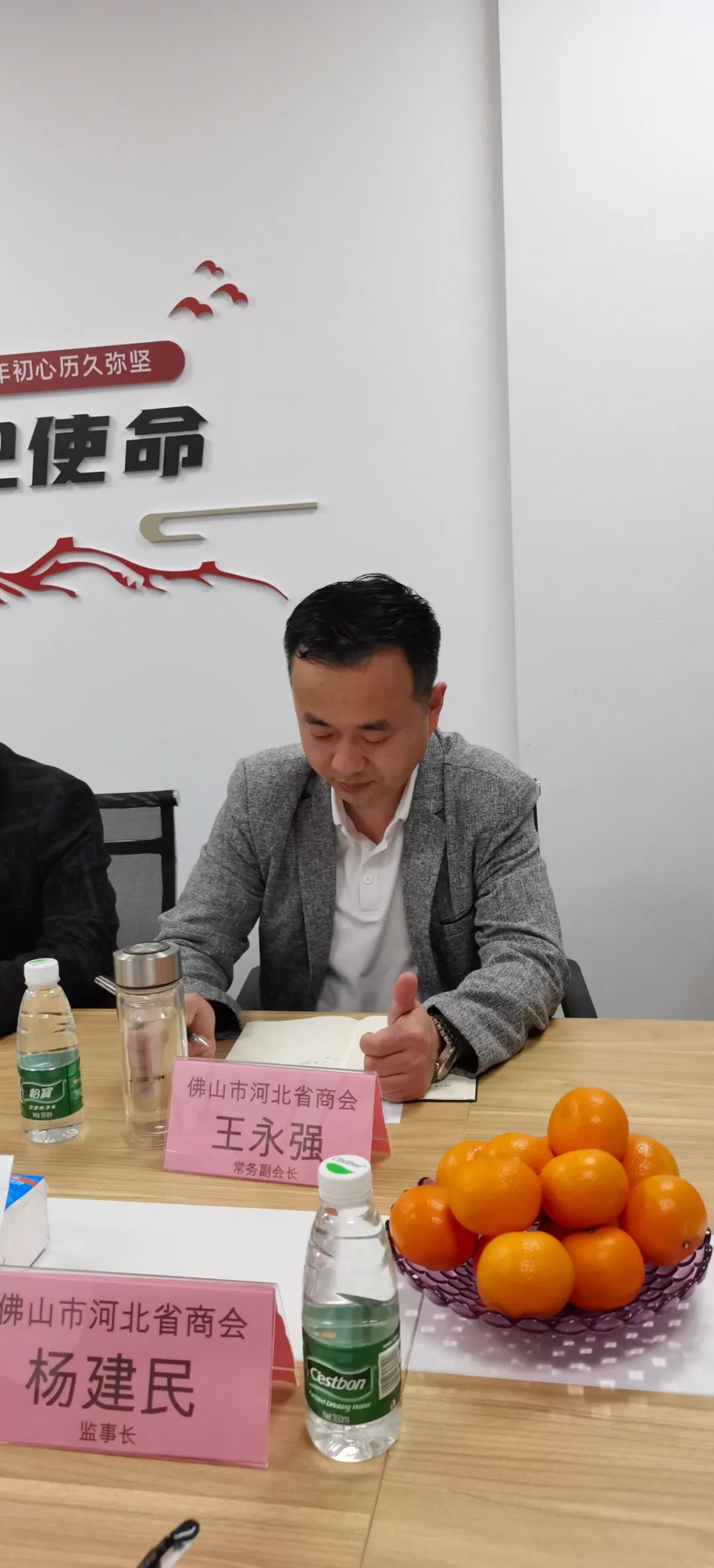 2月10日下午,佛山市河北省商会荣誉会长蔡河义主席莅临佛山市河北省商会交流指导工作,我会会长乔梓峰,执行会长杨建民、王志刚,常务副会长王永强、黄建明、韩中儒、刘凯,秘书长郝炯,副会长梁忠英,会员代表王书凤、聂彩霞、王潇热情接待了蔡主席。