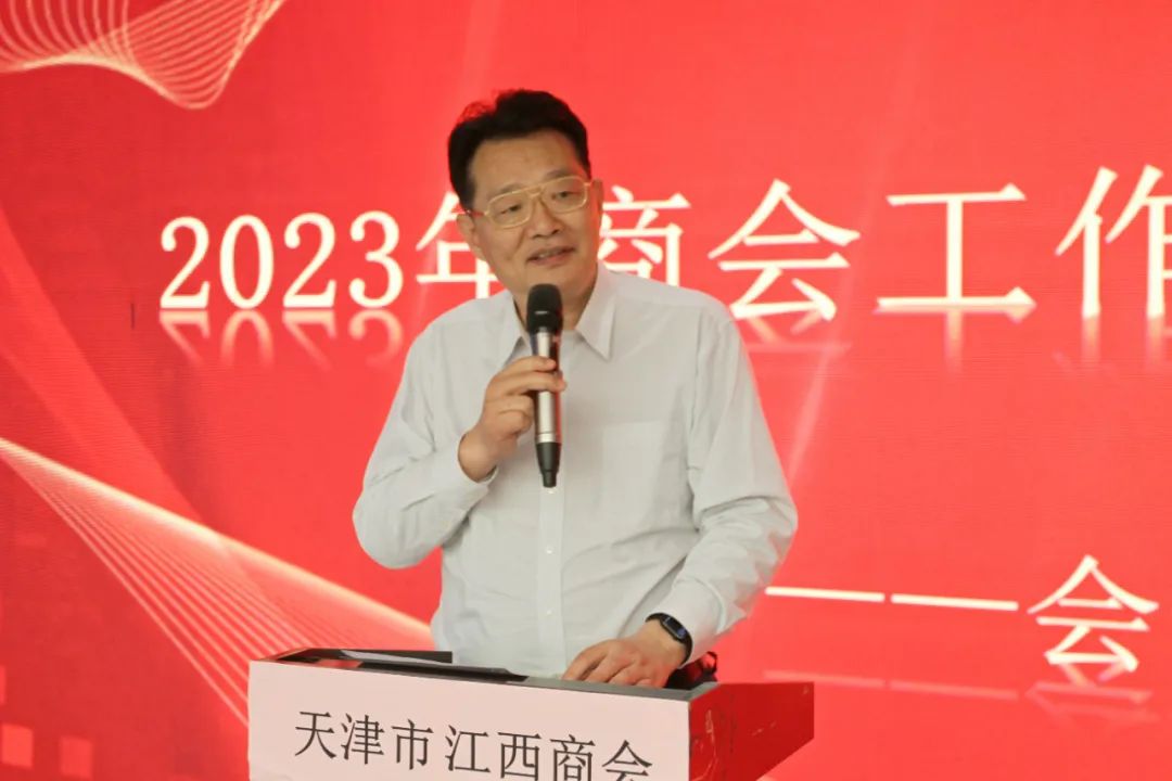 会议最后,会长王辉中作“2023年商会工作目标”和总结讲话。王会长表示,2022年党的二十大胜利召开,推进全党全国各族人民迈上全面建设社会主义现代化国家的新征程、向着第二个百年奋斗目标奋力进军。站在新的发展高度和历史起点,天津市江西商会抢抓机遇、凝聚力量,不断通过提升工作方法建会强会,进一步发挥好商会作用职能。2023年,是天津市江西商会承上启下的重要一年。坚持政治建会、团结立会、服务兴会、改革强会,聚焦“服务会员、服务家乡”,本年度工作计划着重推进以下几个工作方面:1.建立商会联合党委,辅助各市级党支部加强提升党支部工作建设;2.吸纳优秀赣商企业,融入新的血液、新的力量;3.注重企业精准帮扶,以主题沙龙的形式,精准解决企业痛点、难点;4.举办商会特色活动,推进端午龙舟赛顺利完成;5.引导在津赣商回乡建设,促进江西经济建设迈向更高的台阶;6.聚焦赣津两地卫生健康事业发展,发挥“天津市江西商会医疗健康委员会”的功能作用,做好切实服务。