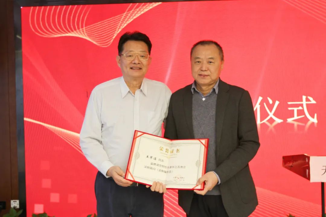 商会工作的提升不仅需要友好商协会、友好单位的支持,还需要领导单位的关心与帮助。特别是近几年的疫情,导致许多企业法律意识淡薄,甚至触犯法律底线。在此情况下,我会会员企业多次得到天津市公安局、天津市工商联防范经济犯罪预警服务平台的指导和帮助。因此在本次理事会上,我会决定正式聘请市公安局经侦总队王军洁同志为商会法治顾问(法制辅导员)并为其颁发聘书,从而加强商会法律法制服务的工作水平。