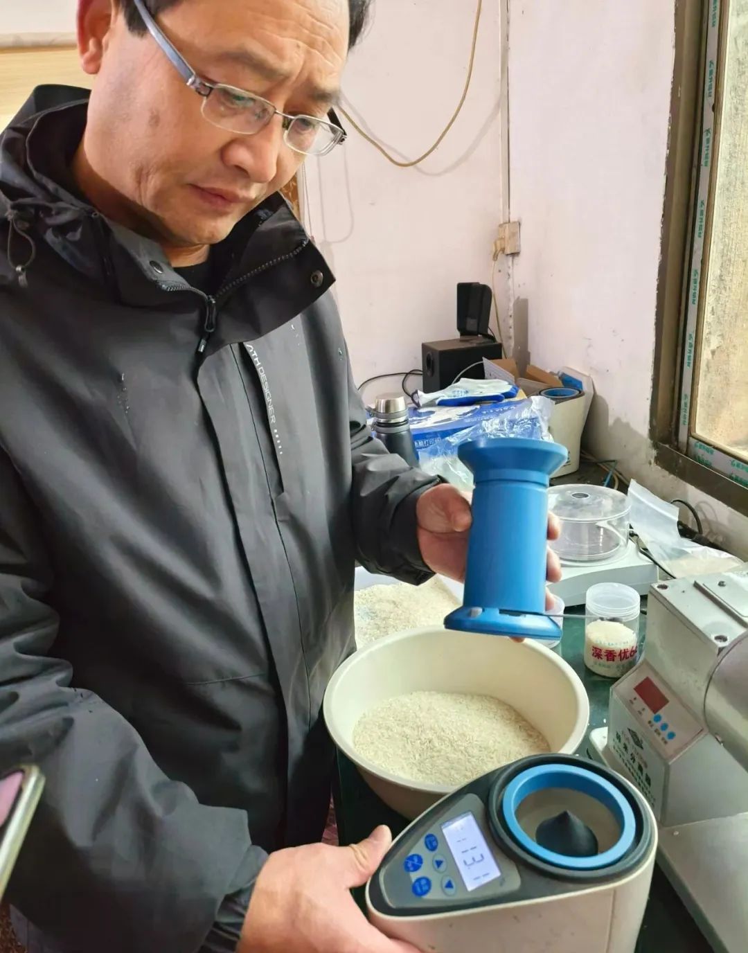 为确保商品质量,树立良好口碑,罗田消费扶贫馆负责人周智勇在湖南军粮基地抽检供应货物。