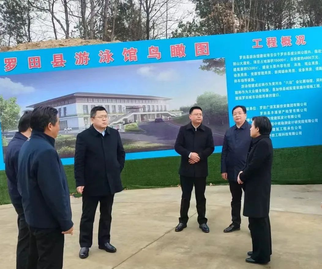县委书记郝爱芳,县委副书记、县长周黎,县委委员、副县长赵小虎到游泳馆项目调研,听取规划设计、施工进度等情况,并有针对性地提出了改进措施和建议,集团董事长杨天平陪同。