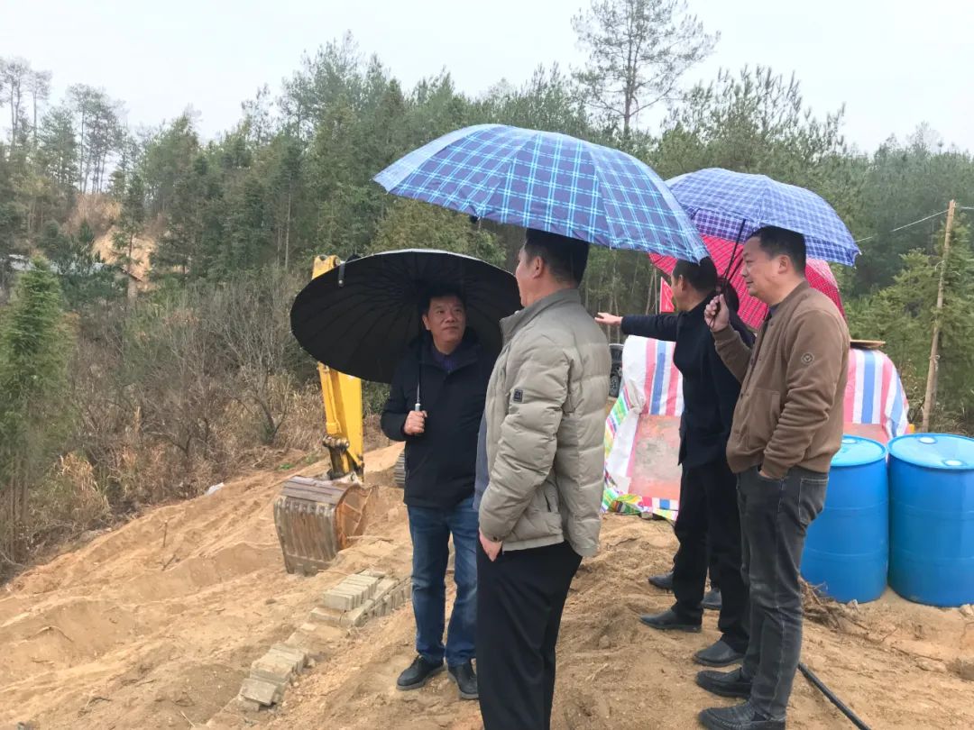 02.集团副总经理、资源开发公司总经理杨金龙,资源开发公司副总经理陈兴隆与大崎镇镇长吴小含、采砂单位一起沟通协商大崎镇无公害生态化龟鳖养殖基地建设( 养殖孵化池)废弃砂料处置相关事宜。