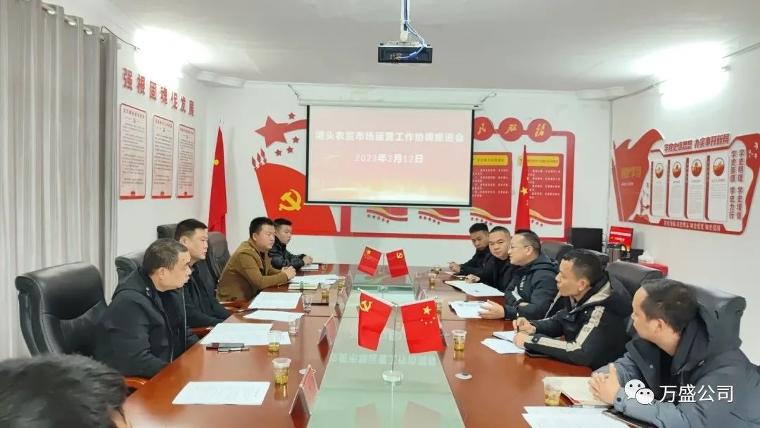 2月12日,万盛集团同塘头镇人民政府,思南浩亿商业运营管理有限公司相关负责人召开塘头农贸市场运营工作协调推进会,会议就农贸市场下一步的运营管理和前期到石阡、江口等地实地调研情况展开交流座谈。