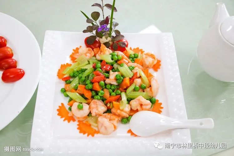 午餐:饭豆香米饭 什锦炒虾仁