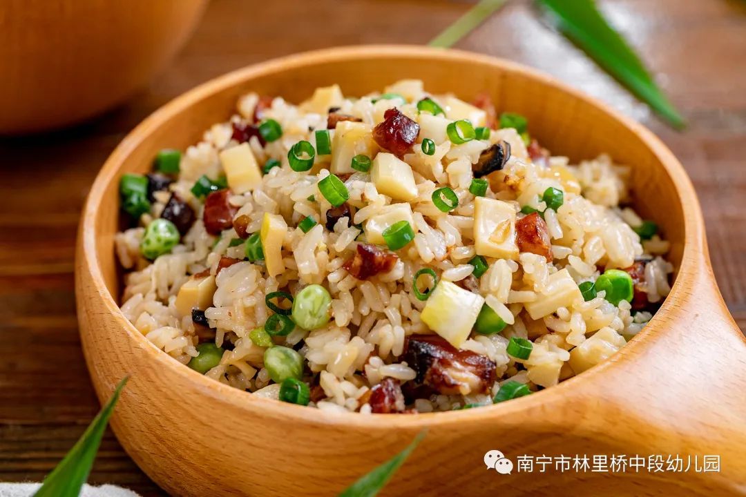 午餐:翠苗香米饭 杏鲍菇炒牛肉粒