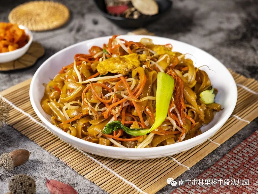 午点:三丝鸡蛋炒河粉 时蔬汤