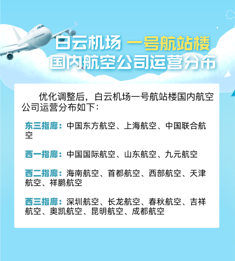 今年以来,白云机场开局抢抓航空市场复苏机遇,加大市场开拓力量,实现了航班运输量持续回暖,国内航班增长快速的喜人局面。为确保航班安全高效运行,持续优化旅客出行体验,白云机场综合一号航站楼国内航空公司国内航线的航班总量、航班时刻等情况,经过认真分析研究,将于2月15日凌晨2点起,对一号航站楼国内航空公司运营区域实施优化调整。