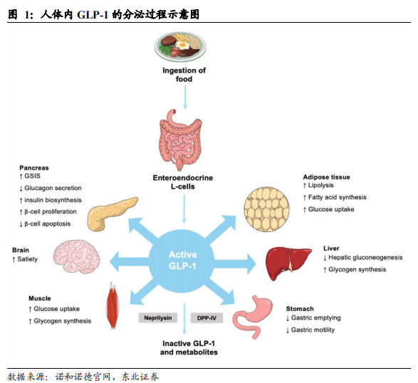 1.1. GLP-1:肠道细胞分泌的多功能多肽
