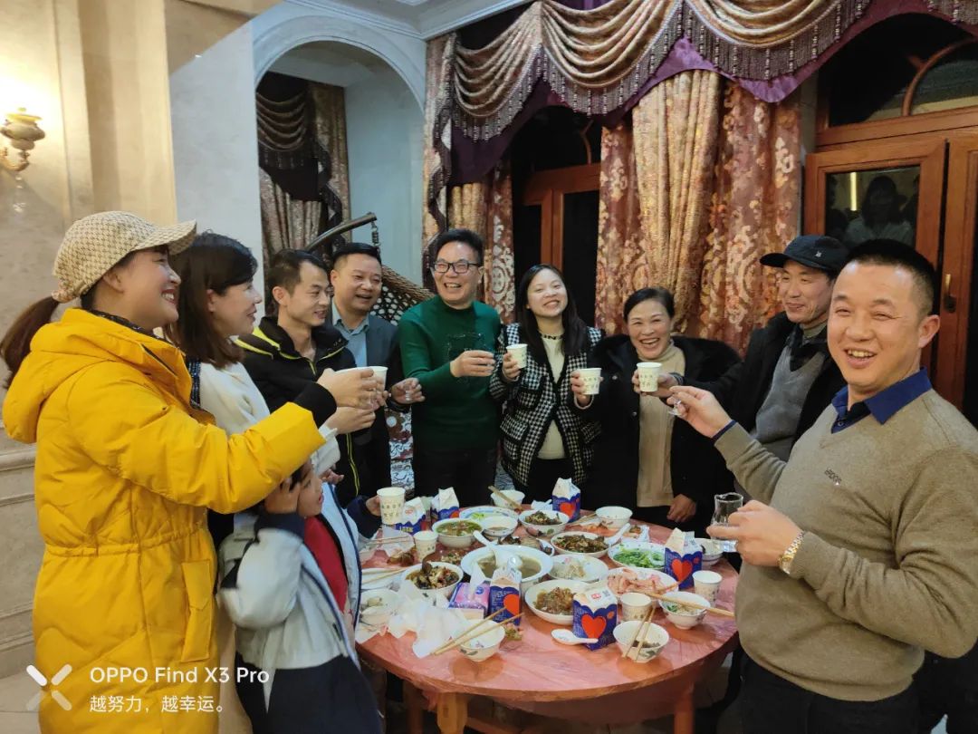 晚上赵会长的夫人为大家准备了丰盛的晚餐,有乡里腊肉、土鸡炖汤、鲜虾鲍鱼……来自家乡的味道让大家畅饮举杯,共同庆祝新年快乐,祝愿商会蓬勃发展,祖国更加繁荣昌盛!