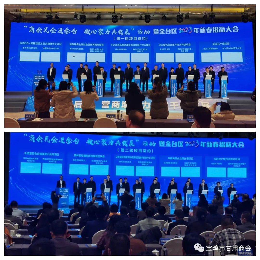 会议上,金台区政府区长王润军致词并推介金台重点项目,区政府为聘请的招商顾问、招商大使颁发证书,为友好商协会授牌,银行为6户企业融资授信3.1亿元。投资16亿元的宝鸡5G+新基建暨工业大数据中心、投资13亿元的美林熙岸国际康养度假区、投资5亿元的永磁直驱电动储能牵引机车等10个大项目现场进行了签约。