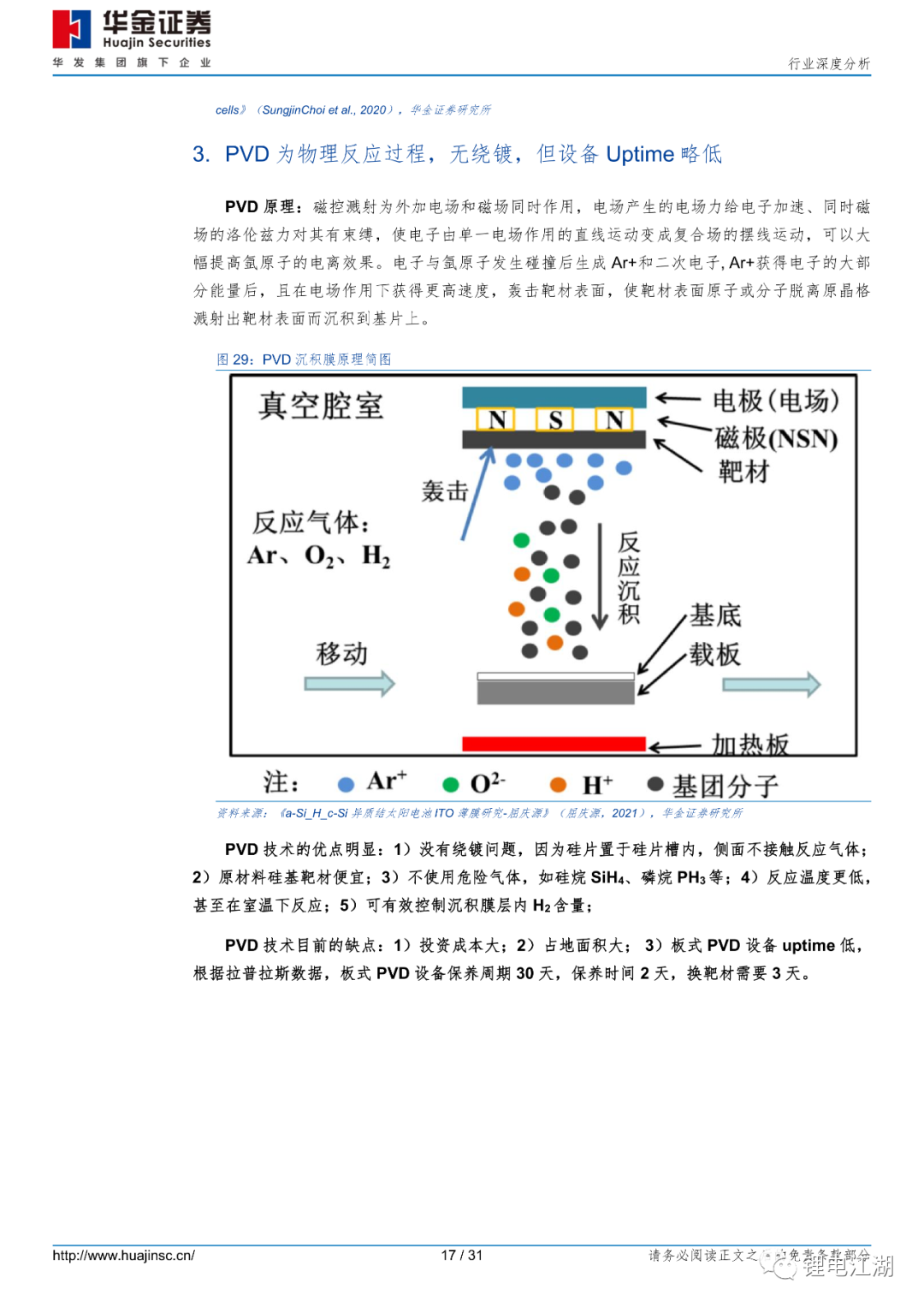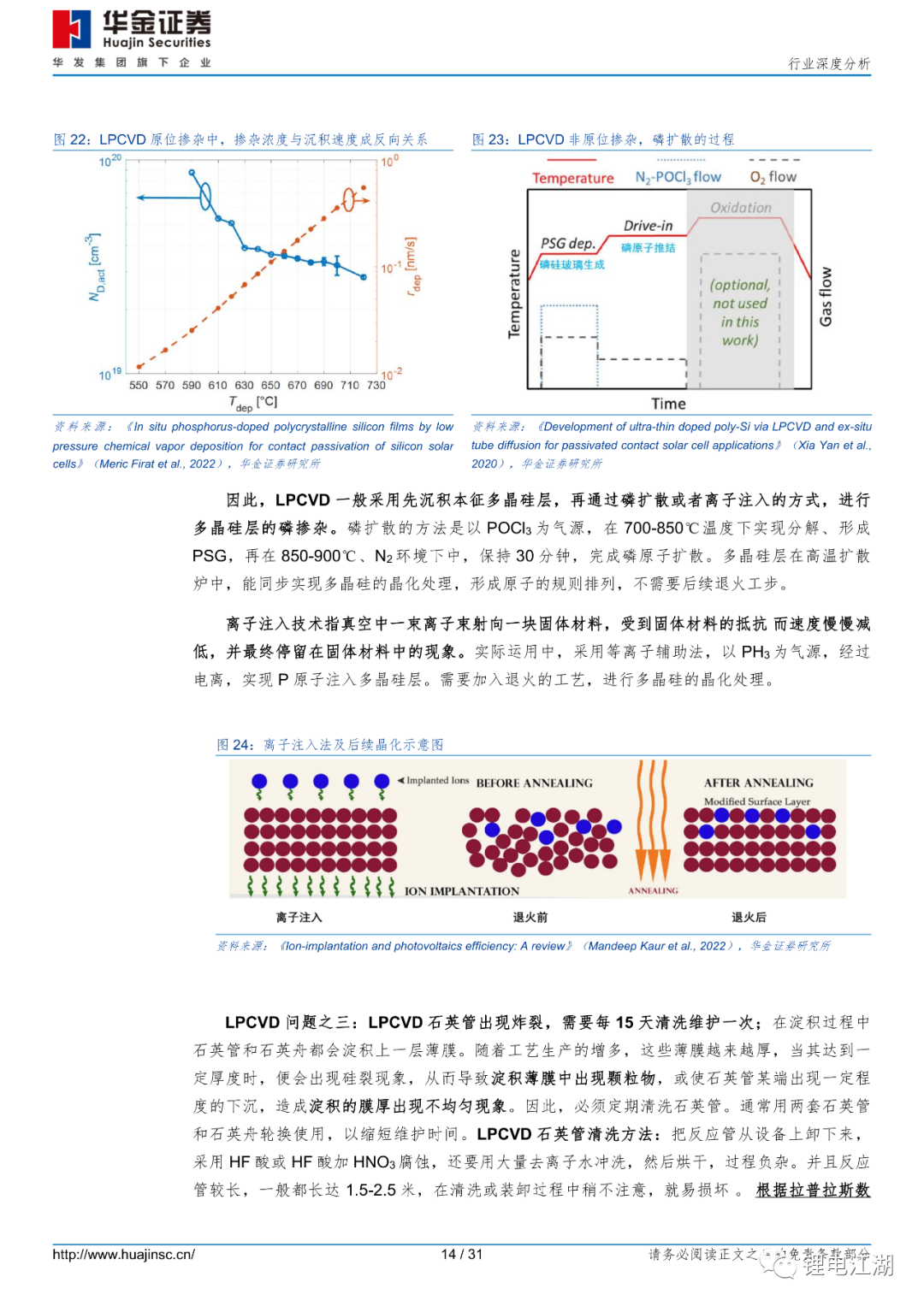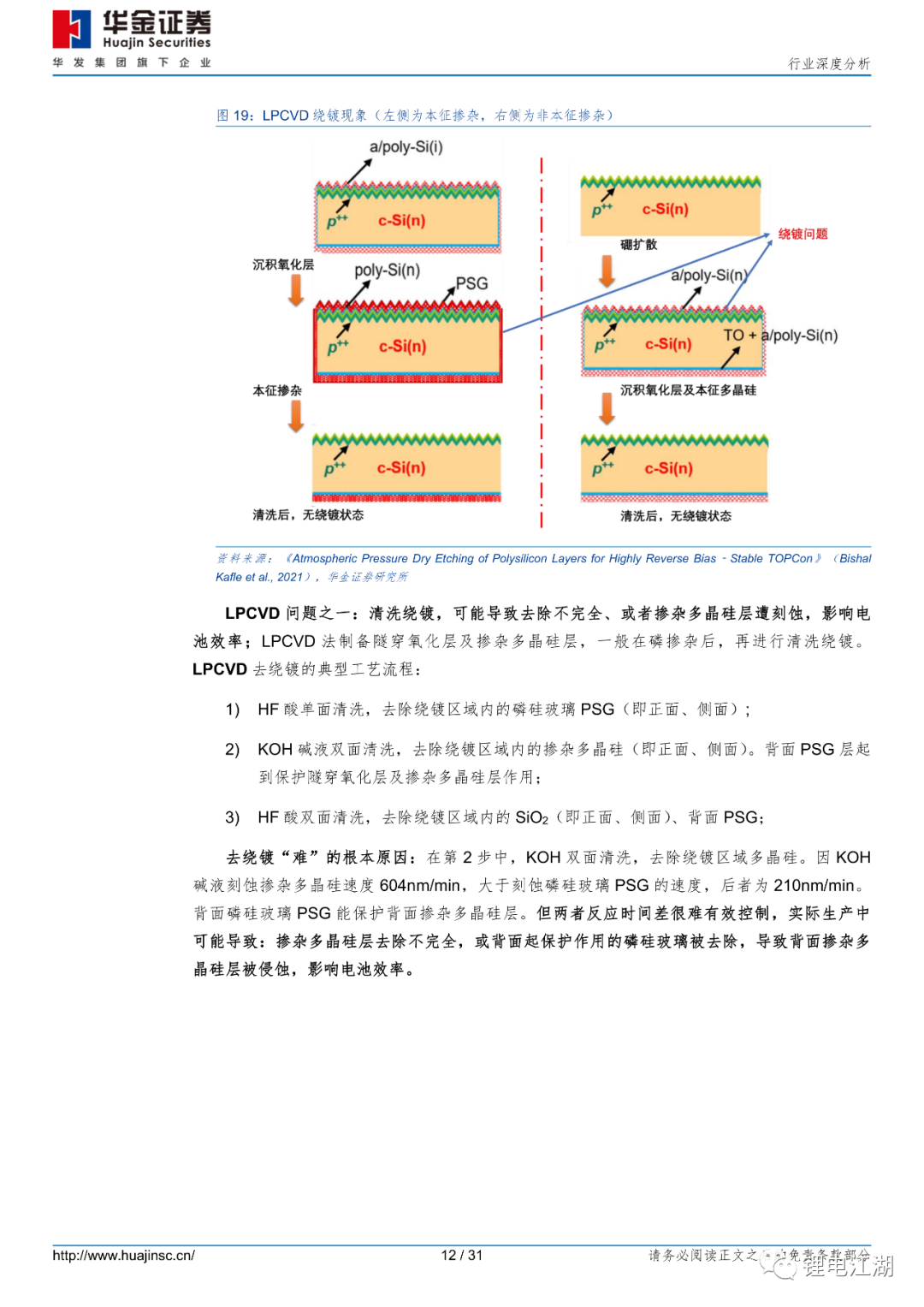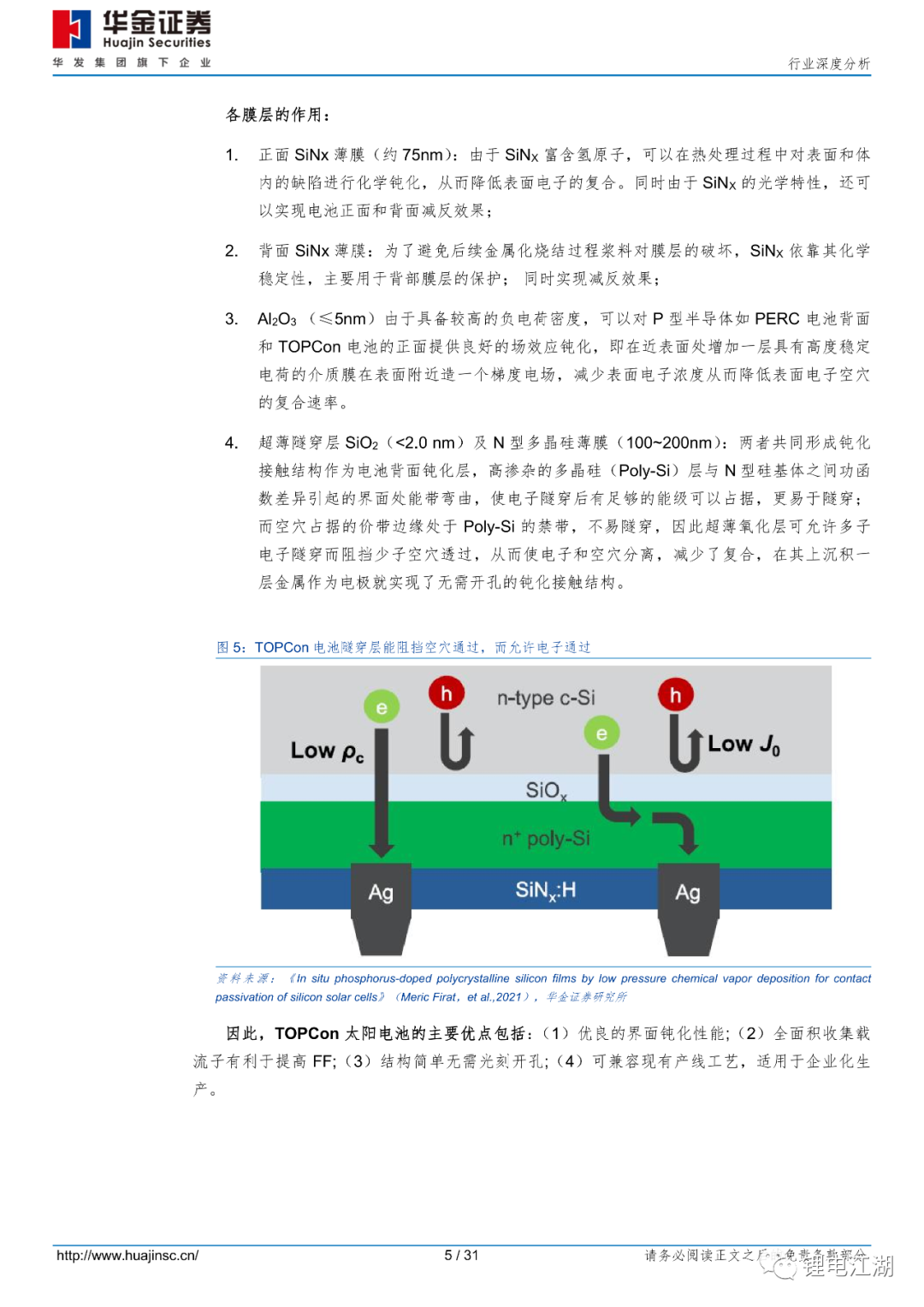 从技术角度看,PECVD法能实现LPCVD法同等制备效果,且清洗绕镀简单,工艺精简、良率预期更高。LPCVD路线技术最成熟,但有严重绕镀、原位掺杂难等问题。因绕镀,LPCVD设备需增加一倍设备;PVD路线,根据ISFH研究观点,PVD钝化效果略差。且实际运行中,维护频率高,开机率低;而PECVD路线轻微绕镀、且清洗容易,可原位掺杂、工艺精简,爆膜问题可通过电池背面微制绒解决。隧穿氧化层质量对电池效率影响至关重要。文献数据显示:从膜层密度角度看,PECVD制备的氧化层密度(2.2g/cm3)要优于LPCVD(2.15g/cm3);从膜层均匀性角度看,PECVD法制备的氧化层粗糙度1.38nm,与LPCVD制备的氧化层粗糙度1.36nm相当。