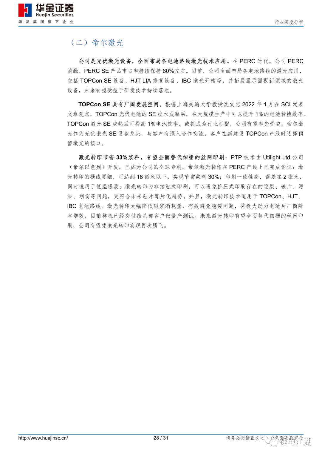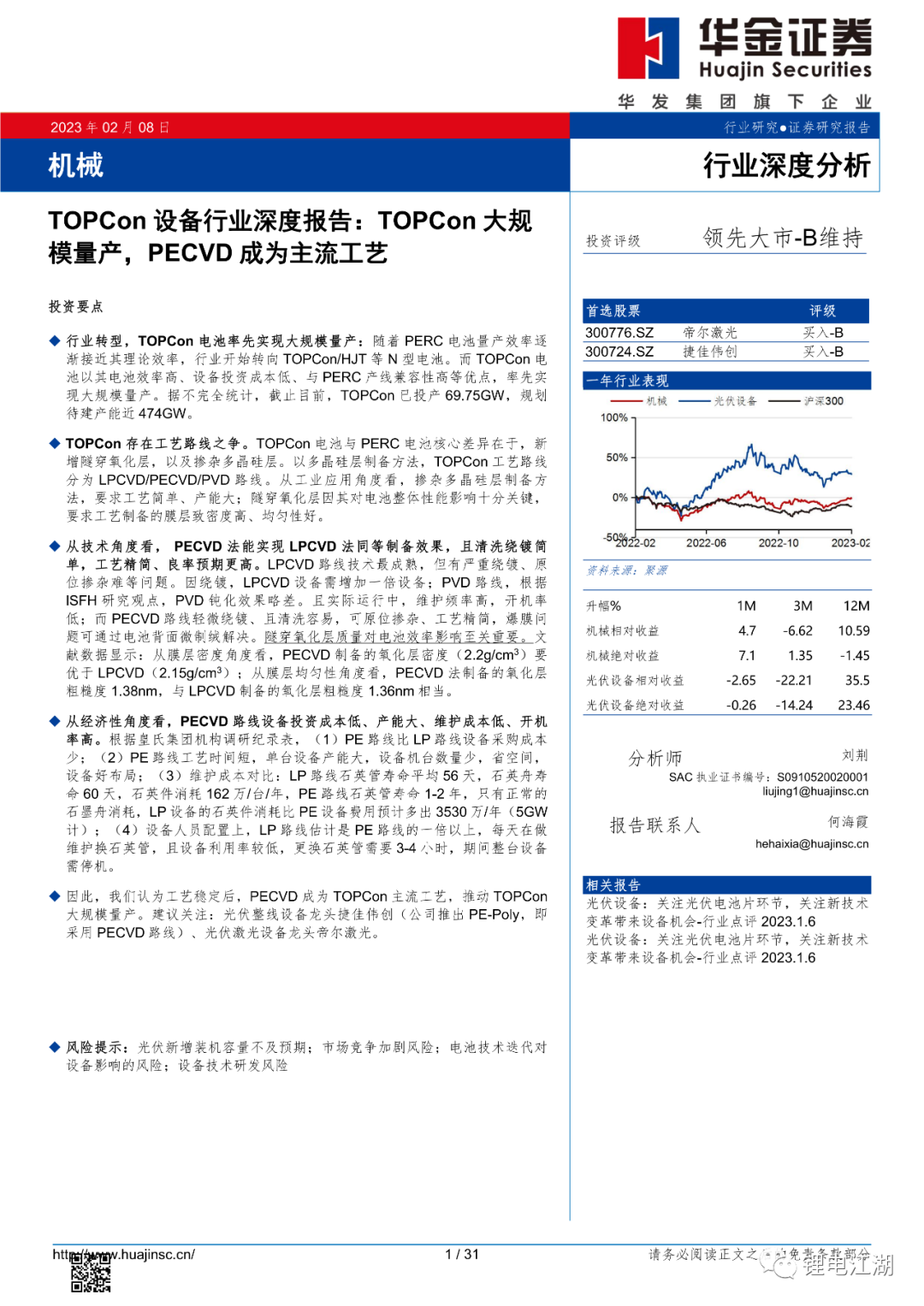 风险提示:光伏新增装机容量不及预期;市场竞争加剧风险;电池技术迭代对设备影响的风险;设备技术研发风险