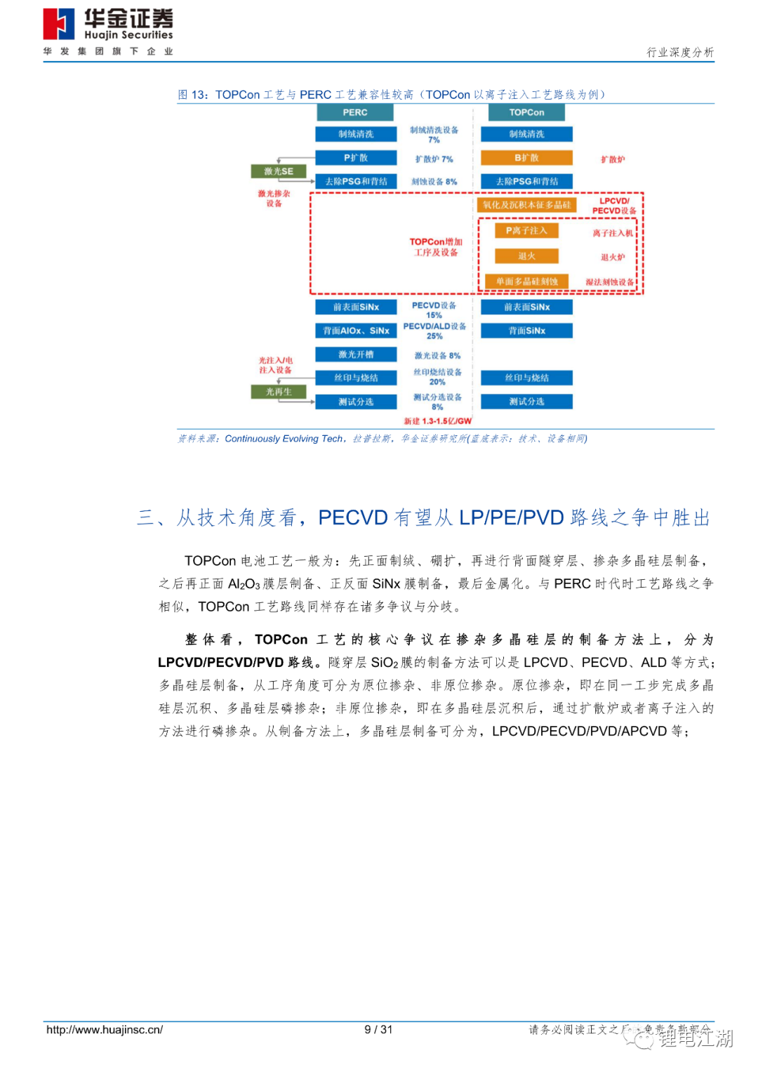 因此,我们认为工艺稳定后,PECVD成为TOPCon主流工艺,推动TOPCon大规模量产。建议关注:光伏整线设备龙头捷佳伟创(公司推出PE-Poly,即采用PECVD路线)、光伏激光设备龙头帝尔激光。
