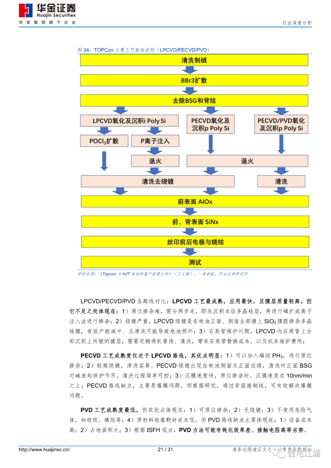 TOPCon存在工艺路线之争。TOPCon电池与PERC电池核心差异在于,新增隧穿氧化层,以及掺杂多晶硅层。以多晶硅层制备方法,TOPCon工艺路线分为LPCVD/PECVD/PVD路线。从工业应用角度看,掺杂多晶硅层制备方法,要求工艺简单、产能大;隧穿氧化层因其对电池整体性能影响十分关键,要求工艺制备的膜层致密度高、均匀性好。