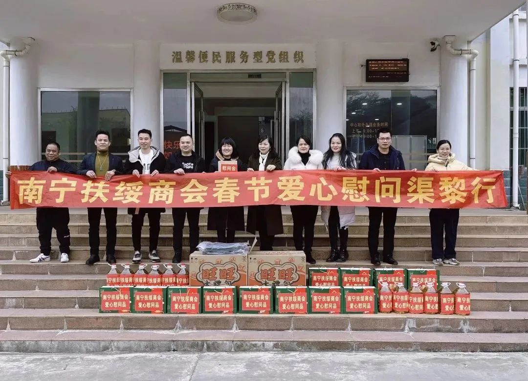 17日,南宁扶绥商会新春爱心慰问渠旧行和中东行合影