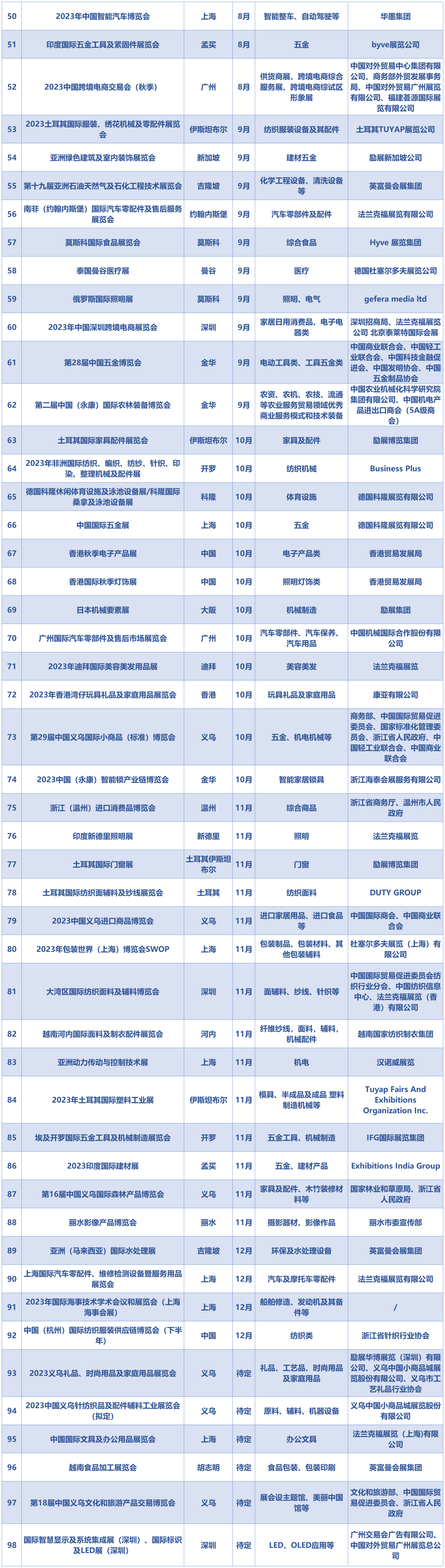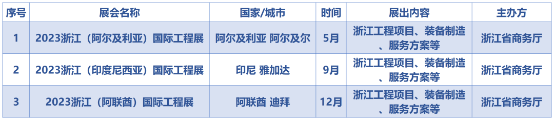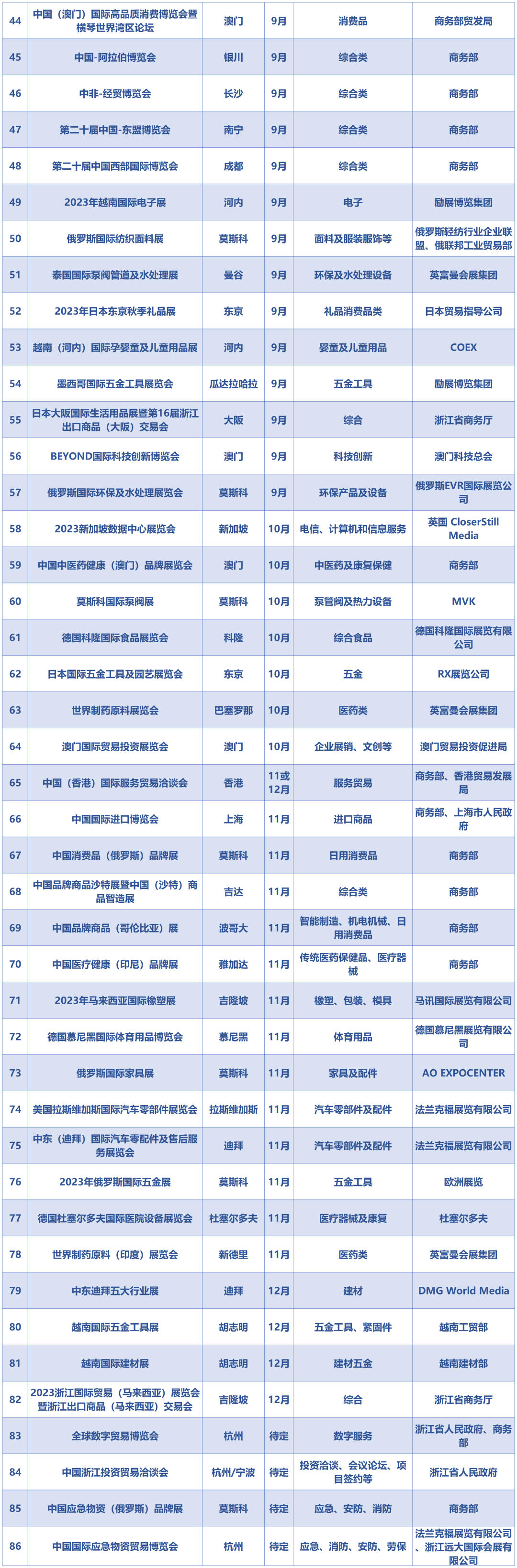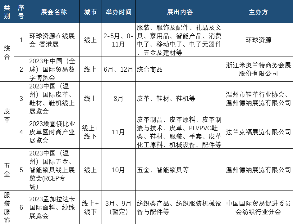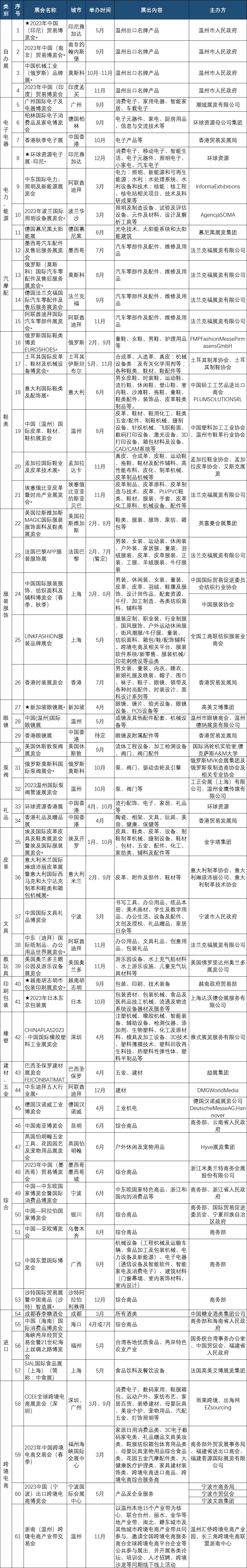 近日,浙江省商务厅会同各市及相关单位研究确定了2023年度商务展会目录。2023拟举办和支持展会252个,进一步发挥好疫情下展会开拓国际国内市场、稳定开放型经济的积极作用。