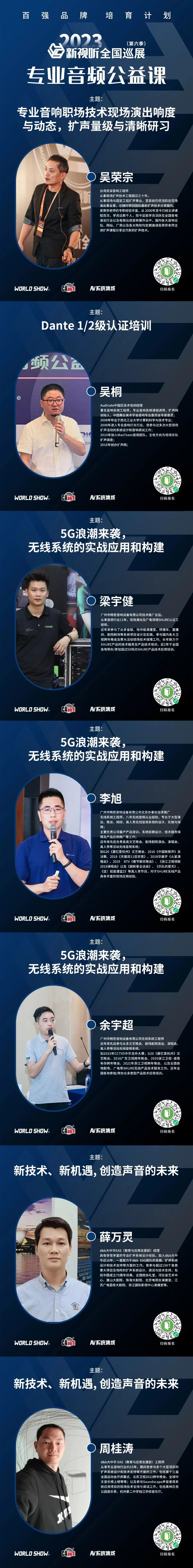 此次的公益课为期 2 天,覆盖《Dante 1/2级认证培训》《专业音响职场技术现场演出响度与动态,扩声量级与清晰研习》《5G浪潮来袭,无线系统的实战应用和构建》《新技术、新机遇, 创造声音的未来》等内容。