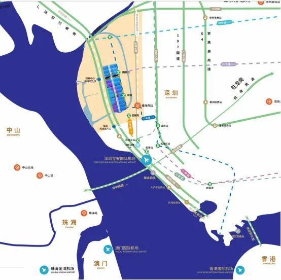 接驳两条高速公路(沿江高速和广深高速)和一条快速路(滨江大道)。