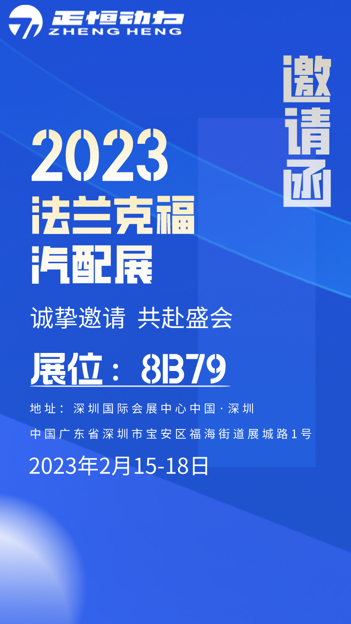 2023Automechanika Shenzhen(法兰克福深圳汽配展)将于2月15日至18日在深圳国际会展中心举办,届时正恒动力将携多款产品亮相。