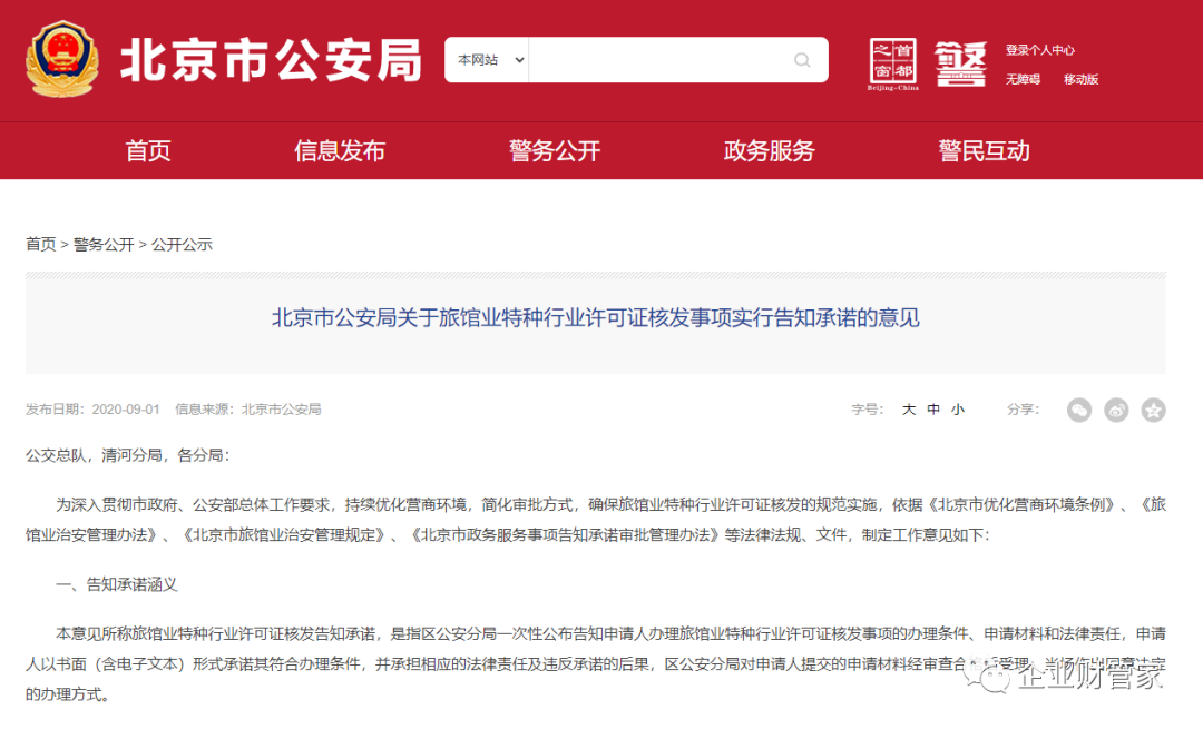 北京市公安局关于旅馆业特种行业许可证核发事项实行告知承诺的意见