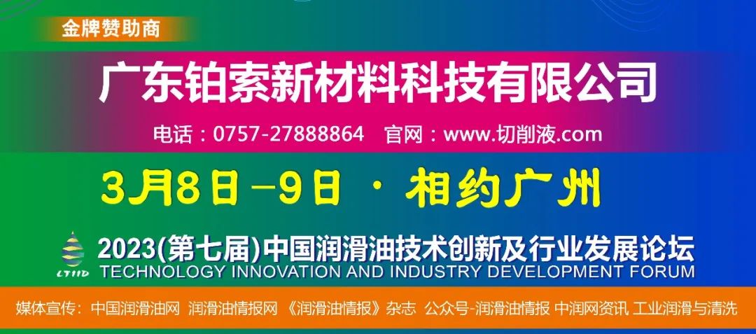 “2023(第七届)中国润滑油技术创新及行业发展论坛”将于3月8日-9日在广州盛大启幕!诚邀新老客户朋友参会支持,共襄盛会!