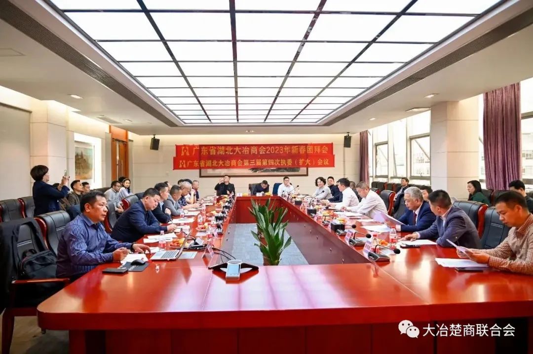 新年伊始,2023年2月8日(农历正月十八)下午,广东省湖北大冶商会在广州召开2023年新春团拜会暨三届四次执委(扩大)会议。会长汪加胜、党委书记周新国、监事长周晓明,执行会长张纯、熊焕、王新兵、黄子敬、肖唐刚、华先敢、卢海彪、廖贡明,党建指导员杨文俊、原党委副书记李盛炳、党委委员、常务副会长柯尊洋,党委委员陈曦东、秘书长袁昌奎及各分会秘书长、党支部负责人等参加了会议。