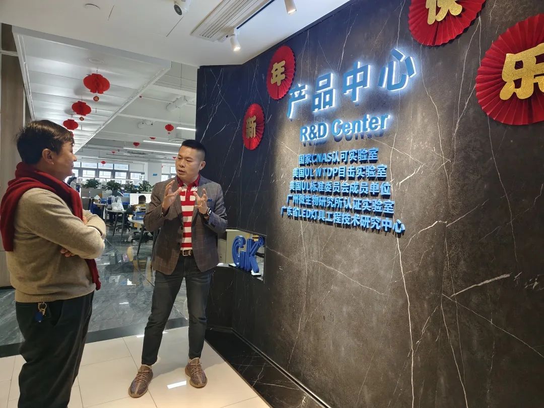 雷总再一次热情的接待了我们。他介绍到,这个中心共两层,共计3000平的面积,是公司的自持物业,已经运作了差不多两年了。可见这些年“冠科”的发展是非常良性的。同时,随着公司的IPO工作的启动,冠科的业务线也重新进行了调整,在原有照明解决方案的产线基础上,新增了家庭储能和新能源板块,这给冠科的营收打开了更大的空间,2022年已经实现产销超过7亿的目标。