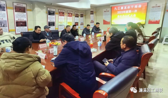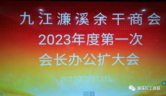2023年2月12日下午,九江濂溪余干商会召开2023年度第一次会长办公扩大会。会长王辉明、执行会长余海和、吴顶、常务副会长张文坚、夏青峰、胡辉阳、李仁光、监事长万美红、秘书长汤乐喜、党支部书记王晓福、监事刘永龙以及副秘书长方钦旺、戴美容、涂金丽等参加会议。