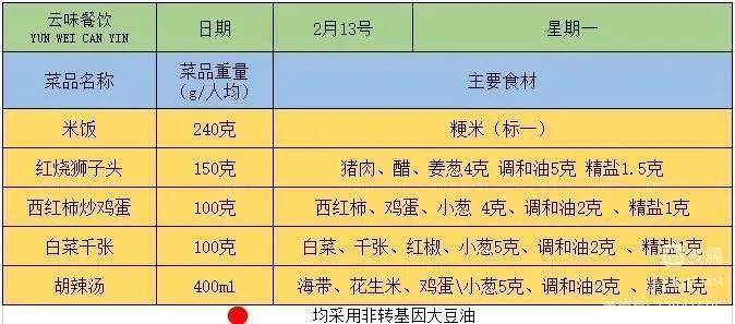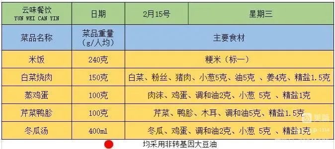 1:凤阳云味餐饮厨房所使用的油均为一级非转基因大豆油(金龙鱼/福临门)。