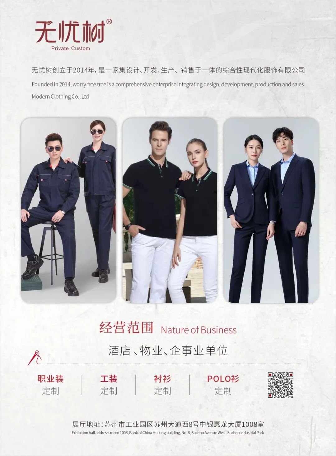 菩提服饰旗下品牌无忧树,2009年在安徽蒙城设立生产基地,历经十余年的发展,现有生产车间15000平方,用工400余人,成为年产各类服装服饰1000余万件/套规模的企业。目前苏州有2家门店,主要合作客户有苏州广电传媒、苏州新港物业、优尼科、盛尼物业、苏州优备、西安优露清日化、苏州博克集团、中意、利安、新华、人寿等。