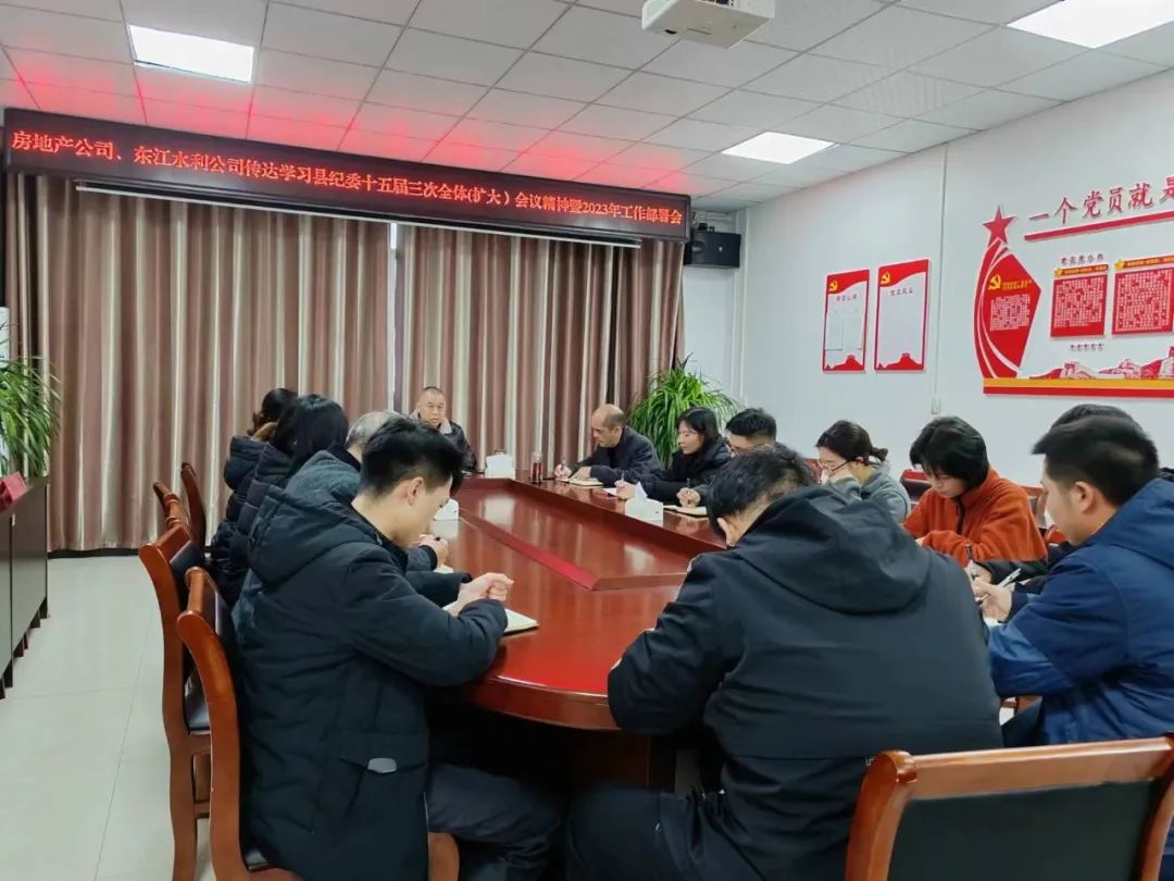 集团支委委员、工会主席、房地产公司经理李福明,东江水利公司经理欧阳山春联合主持召开办公会议,传达县纪委相关会议精神以及部署2023年度工作。