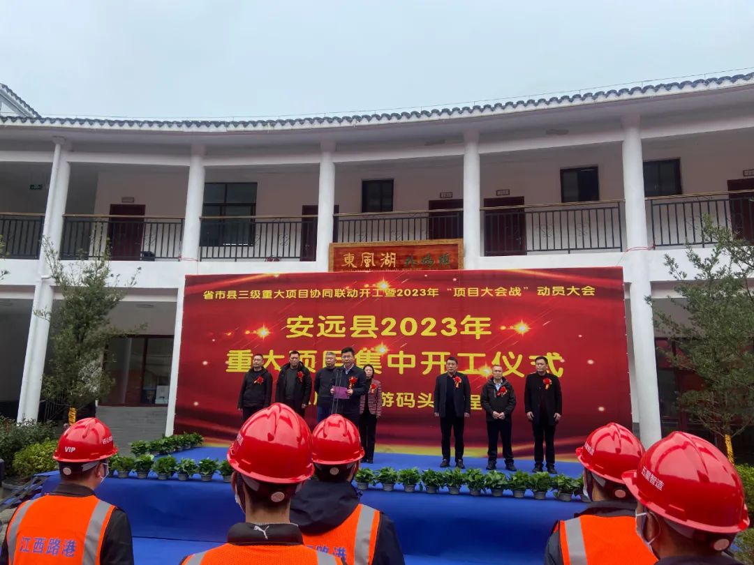 集团班子成员出席省市县三级重大项目协调联动开工暨2023年“项目大会战”安远县2023年重大项目(东风湖旅游码头项目)开工仪式房地产公司、东江水利公司联合召开办公会议,部署2023年度工作2月6日上午,集团党支部书记、负责人何良礼带领班子成员出席省市县三级重大项目协同联动开工暨2023年“项目大会战”安远县2023年重大项目(东风湖旅游码头项目)开工仪式,集团党支部副书记、总经理洪海涛介绍项目情况。