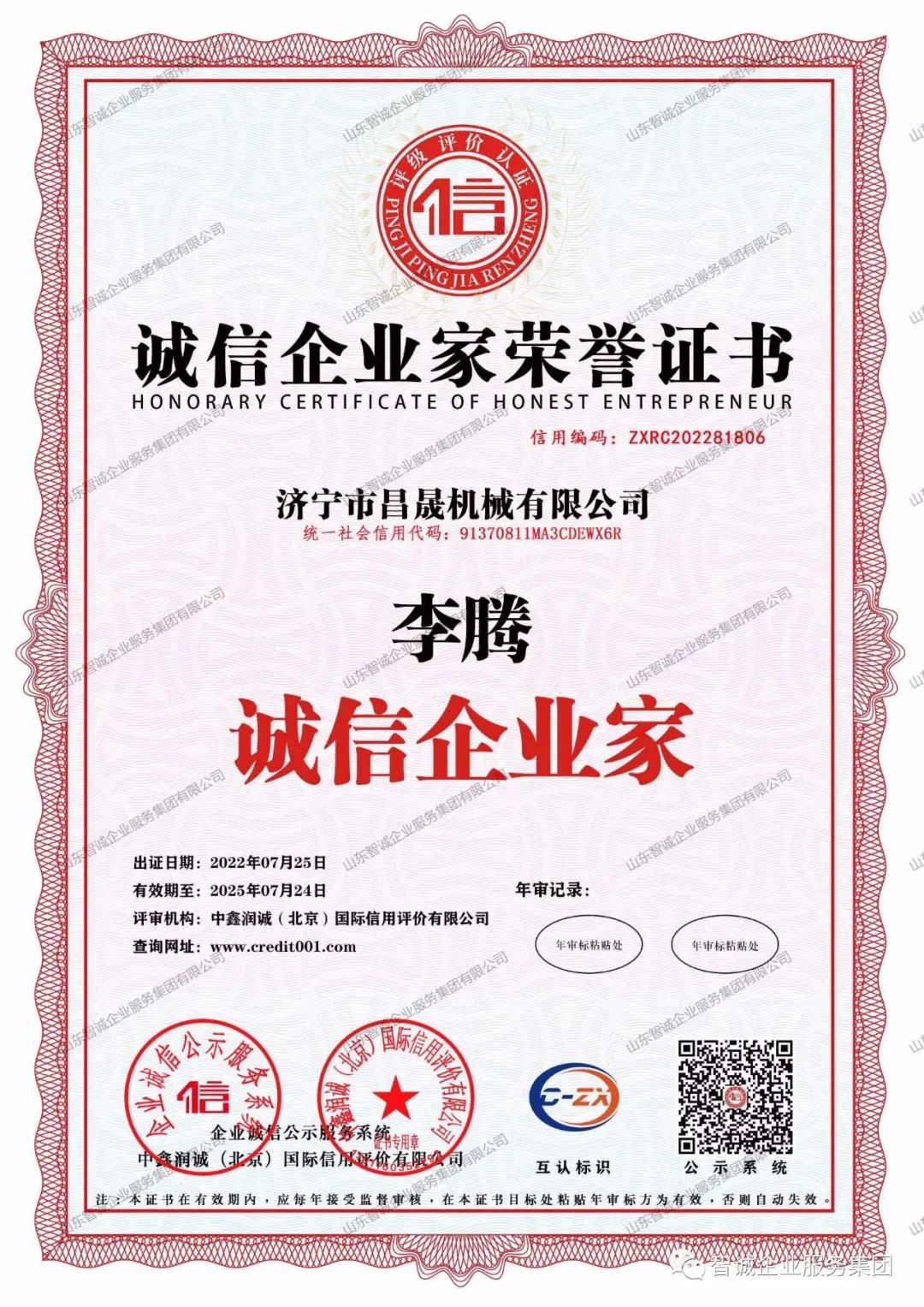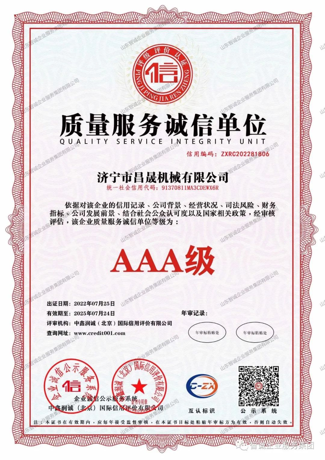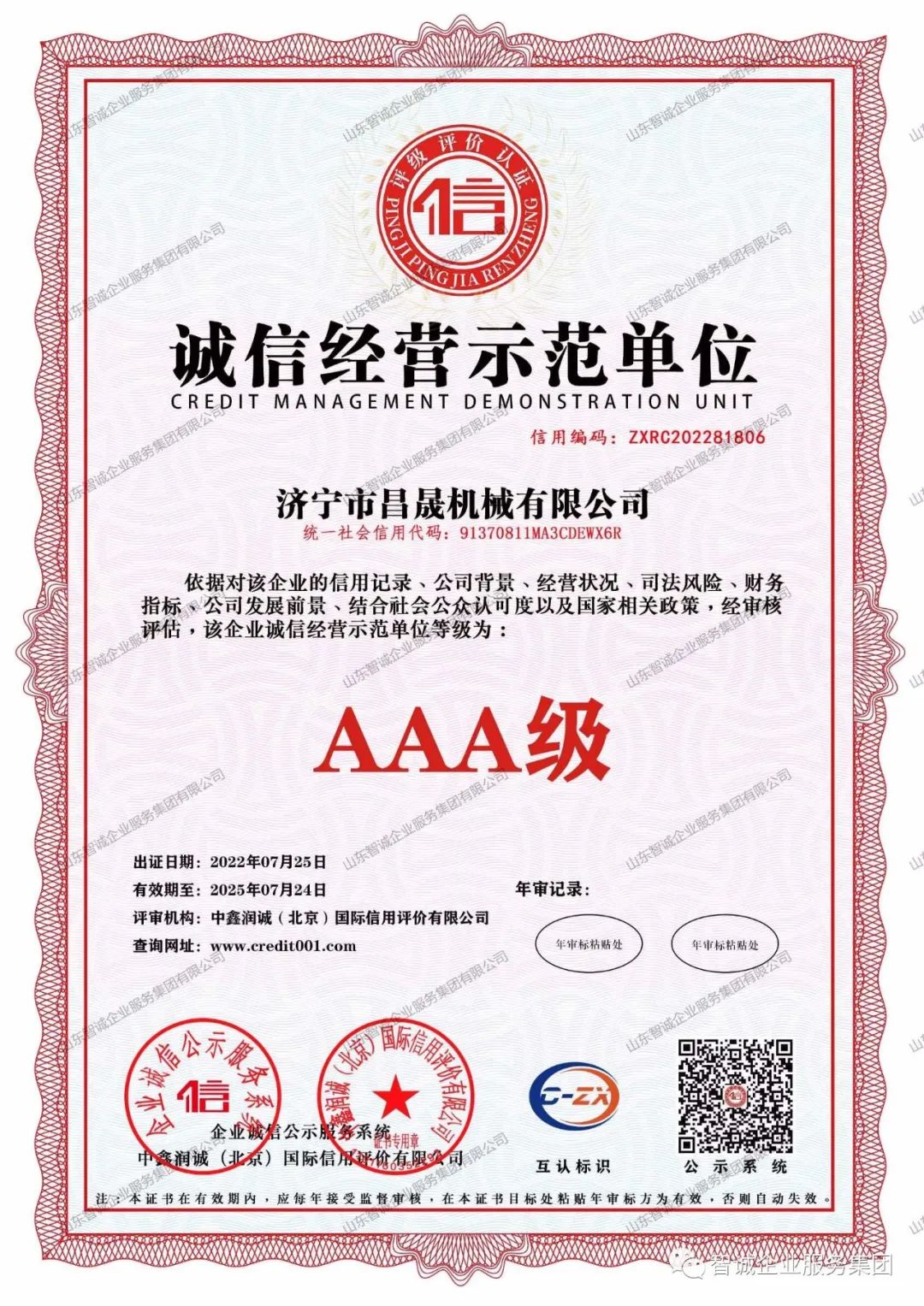 公司始终遵循“做品牌企业、立名牌产品”的发展理念,凭借优秀的企业文化、先进的生产设备、精湛的技术力量、一流的管理方法、可靠的质量和周到的售后服务,用坚定的信念和毅力树立起昌晟机械产品品牌和企业形象,促进企业不断壮大和发展。
