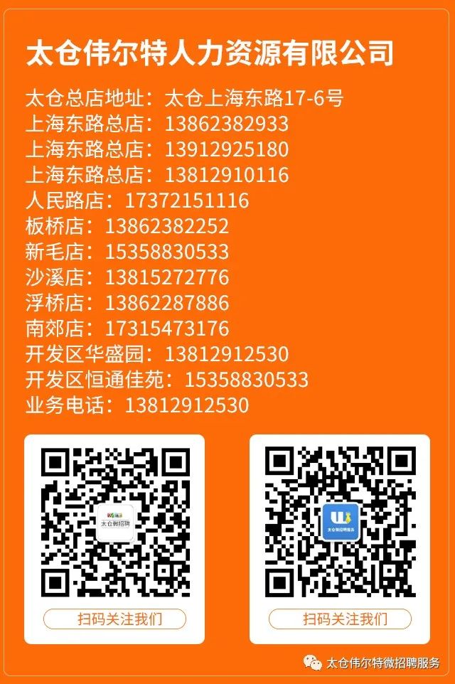 报名地址:太仓上海东路17-6号伟尔特人力资源有限公司