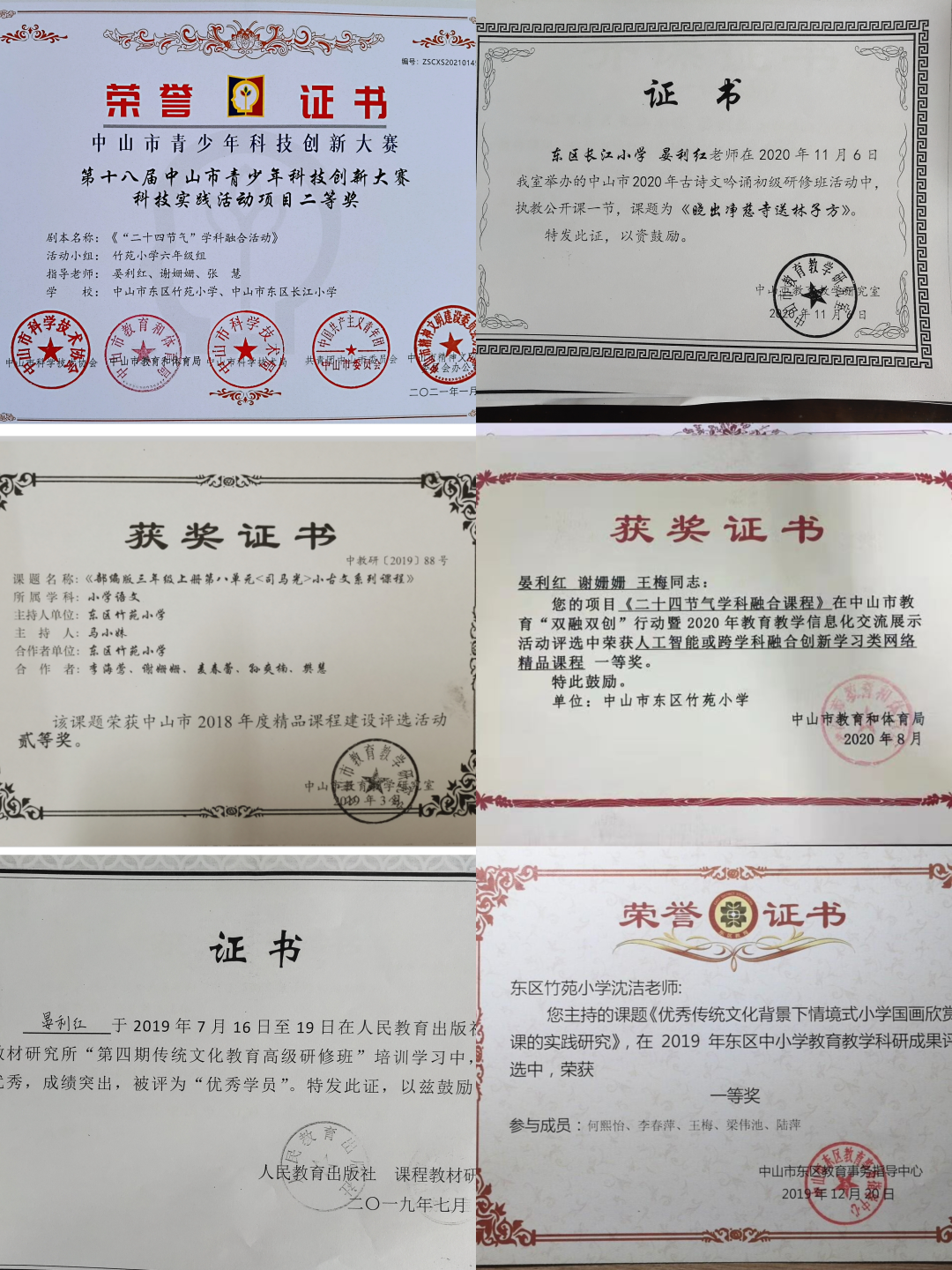 在梁雪菊老师的多次指导下,本课题的开展,有效提升了教师的专业化水平,增强了学校教科研氛围,提高了教师的问题意识和中华优秀传统文化教育能力。截止2021年8月,本课题成员主持或参与的4个子课题在中山市第十一届教科研成果评选、东区街道第三届区级课题成果评选中获奖,发表论文5篇。此项目于2021年12月获得中山市第十二届教科研成果基础教育类二等奖。