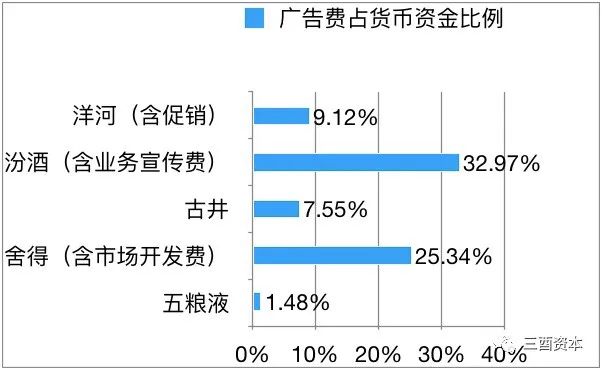 根据这5家白酒上市公司2021年财报测算显示,连续八年亮相春晚的古井贡酒的广告费占当年货币资金的比例仅为7.55%,五粮液更是低至1.48%。该项占比较高的汾酒为32.97%,舍得为25.34%,但这两家的广告费中分别含有业务宣传费与市场开发费,故不能冒然断定因果关系。