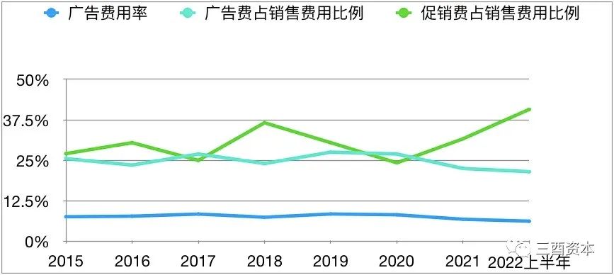 (2019-2022上半年广告费用率对比,制图:三酉资本)