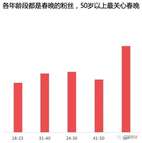 随着移动互联网的发展,春晚的播放渠道也逐步由电视端转移到移动端,根据头条指数此前发布的《春晚流行趋势报告(2016-2018)》显示,在移动端消费春晚的人群年龄构成中,50岁以上的人群占据绝对主力,观看数量较其他各年轻人群高出二分之一左右。