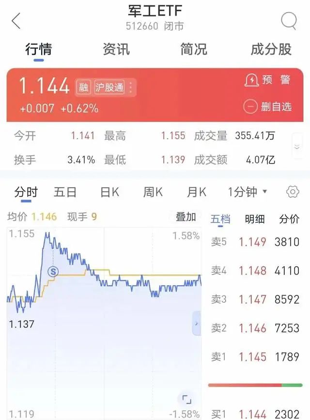 军工ETF,早上挺强势的,原来是只纸老虎,回落马上卖出1份。
