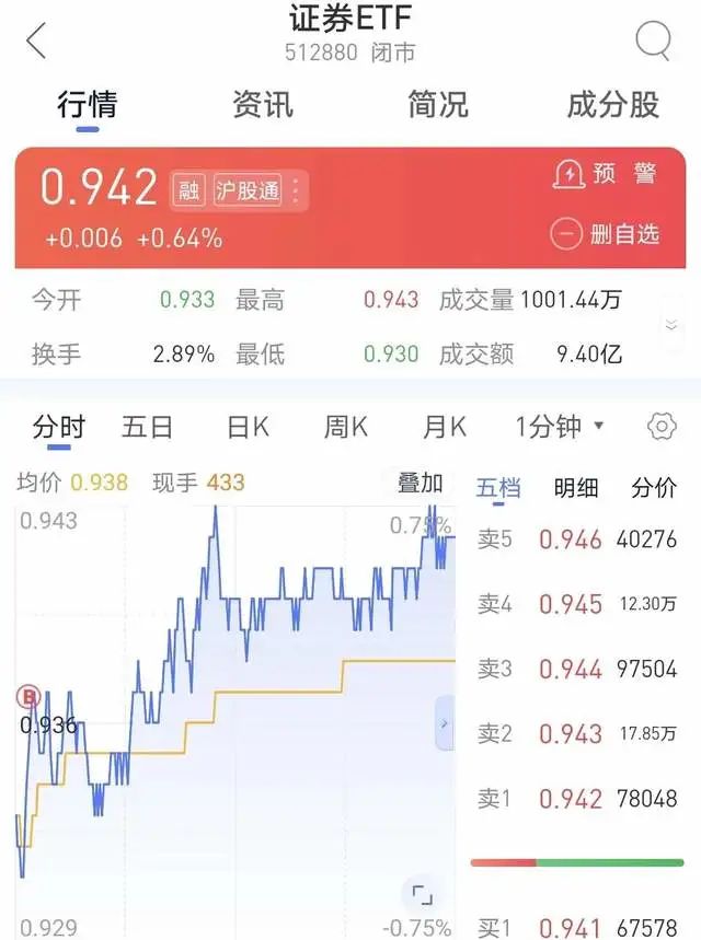 证券ETF,买入1份。