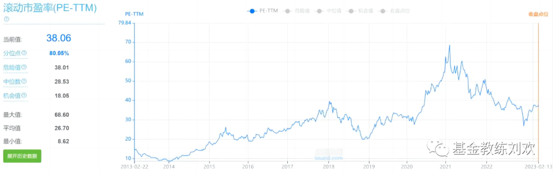 从这个图里面我们可以看到,白酒板块目前滚动市盈率(PE-TTM)是38倍,分位点80%,21年高点的时候是68倍;从静态来讲,相对于估值跌到尘埃的板块,那白酒这样看似贵了点;