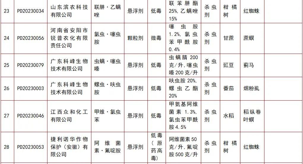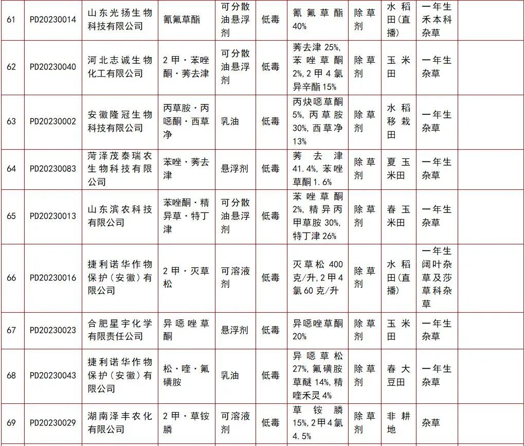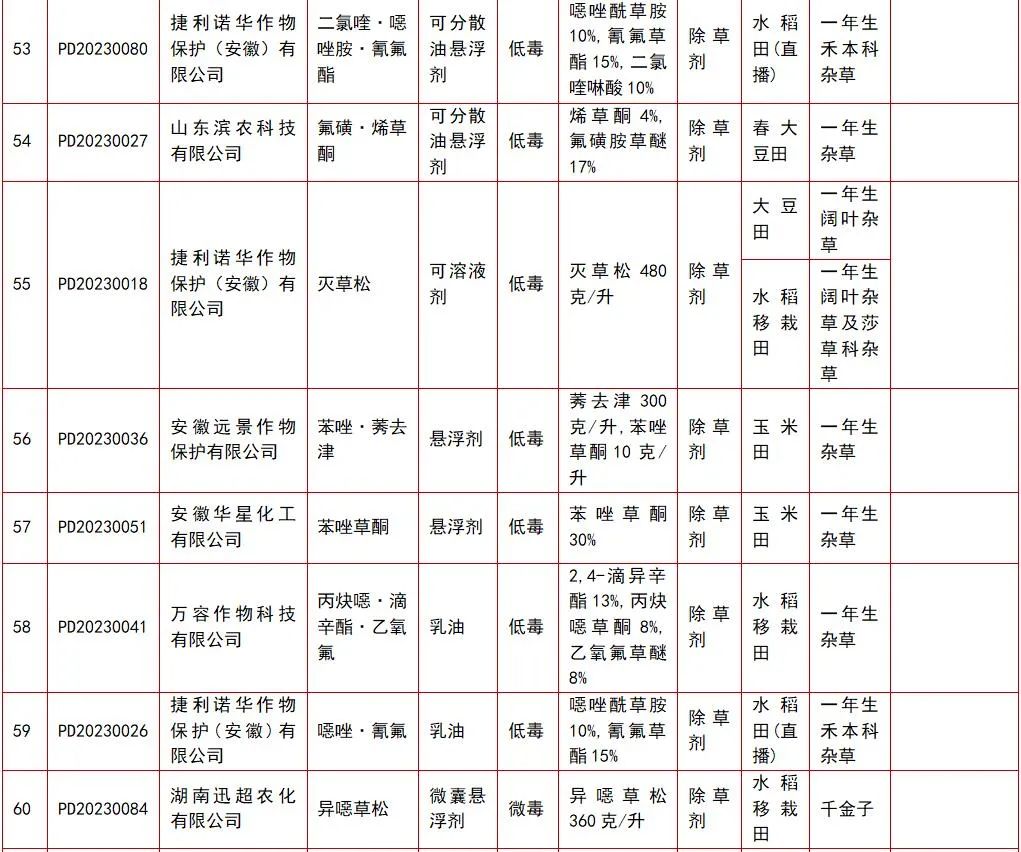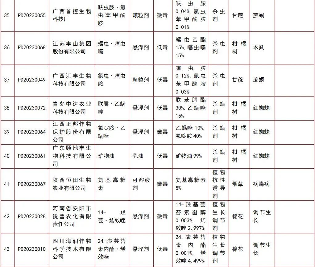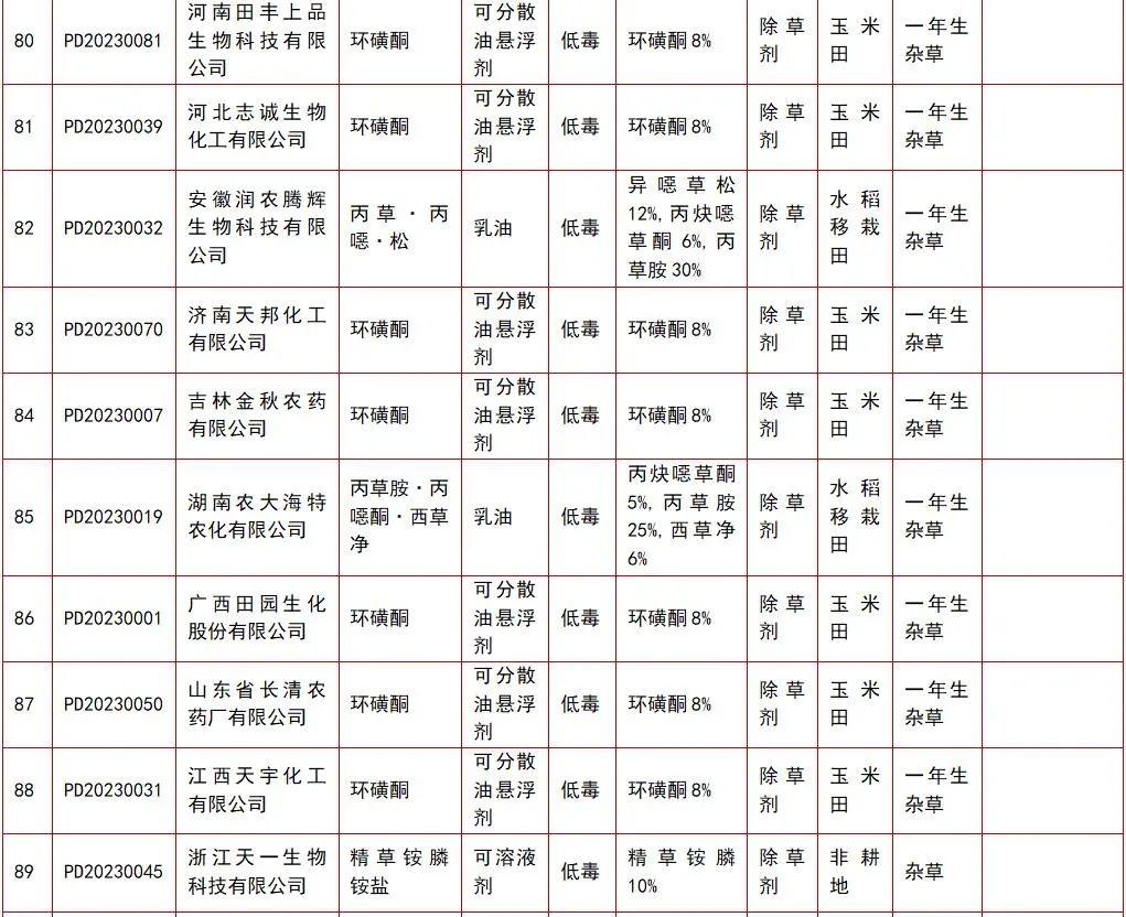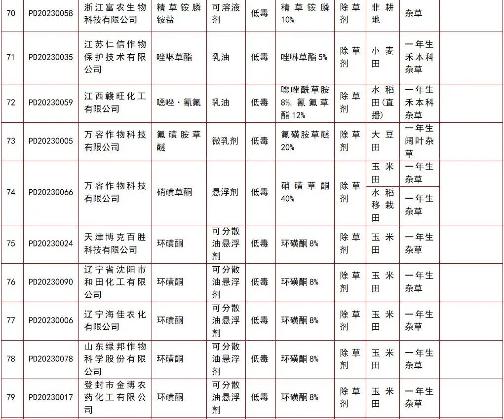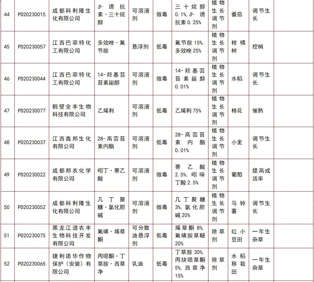 根据《农药管理条例》《农药登记管理办法》等有关规定,经技术审查、全国农药登记评审委员会评审,批准桂林柏松生物科技有限责任公司等65家企业的92个非新农药产品登记(3个产品部分同意),江苏中旗科技股份有限公司等35家企业的45个农药产品登记变更(2个产品部分同意)。对批准登记及登记变更产品颁发《农药登记证》、不再核发纸质标签。具体标签内容可通过:中华人民共和国农业农村部—机关子站—种植业管理司(农药管理司)—农药行政审批信息发布—农药登记查询,也可登录中国农药信息网查询。