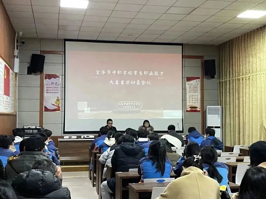 2月8日,国贸学校召开金华市中职学校学生职业能力大赛赛前动员会。