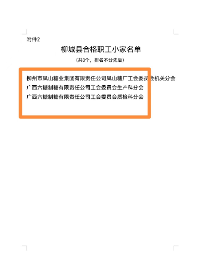 2月10日,六塘公司生产科分会、质检科分会通过柳城县总工会的审核验收,荣获“柳城县合格职工小家”称号。