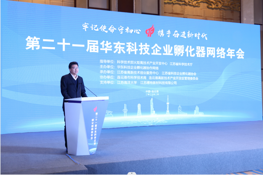 2月11日,第二十一届华东科技企业孵化器网络年会在江苏连云港成功召开。本次年会由华东科技企业孵化器协作网络主办,江苏省高新技术创业服务中心、江苏省科技企业孵化器协会承办,连云港市科技局、连云港国家高新区管委会协办。科技部火炬中心徐轶副主任、江苏省科技厅二级巡视员赵扬威、连云港市政府副市长张家炯出席并致辞。科技部火炬中心孵化器管理处、江苏省科技厅高新处相关负责同志,华东六省一市科技管理部门、科技创业孵化行业协会和科技创业孵化服务机构代表等共130余人参加会议。