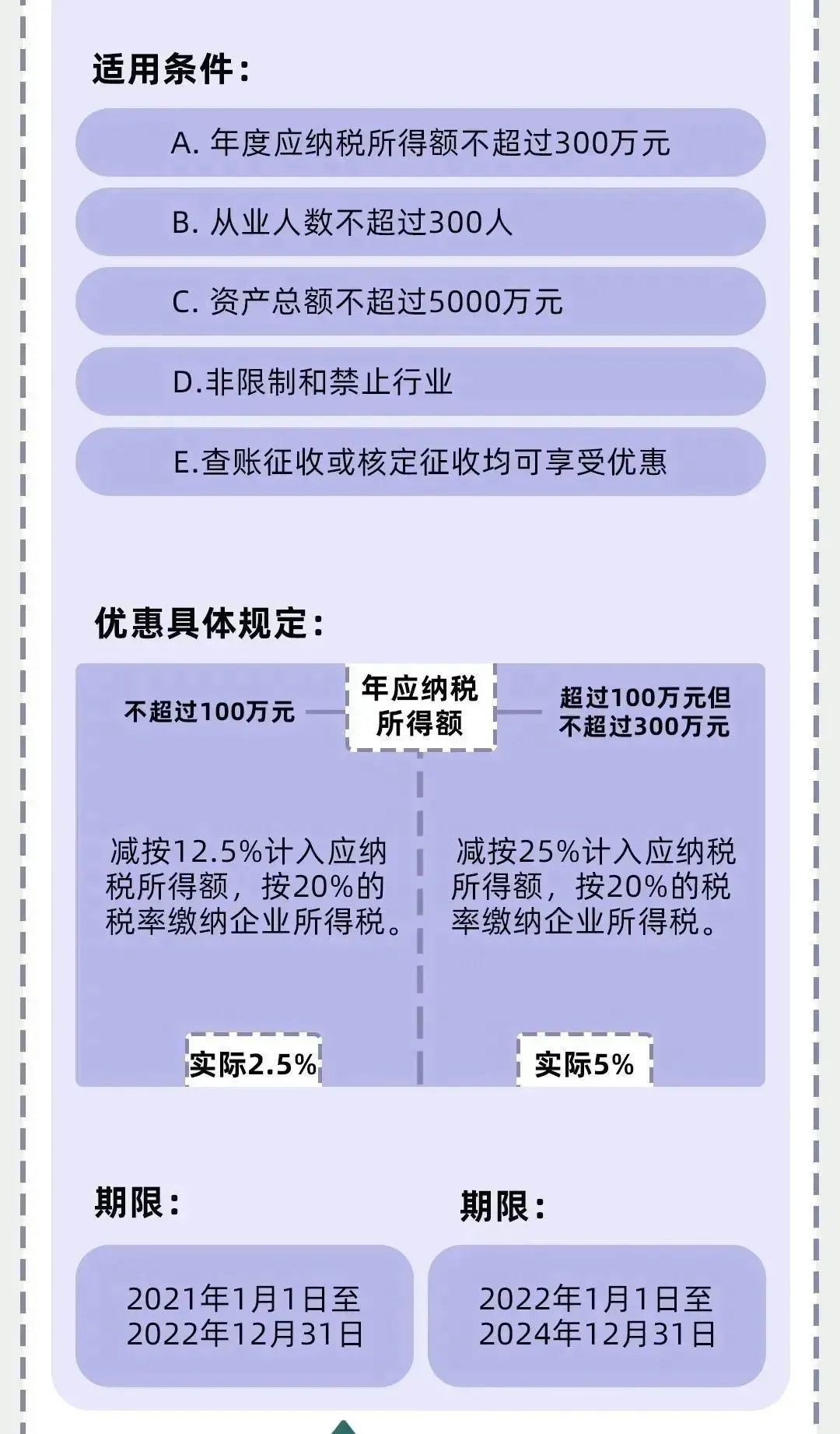 也就是说,不超过100万部分的实际税负仅为2.5%!政策执行期间为2021年1月1日至2022年12月31日。