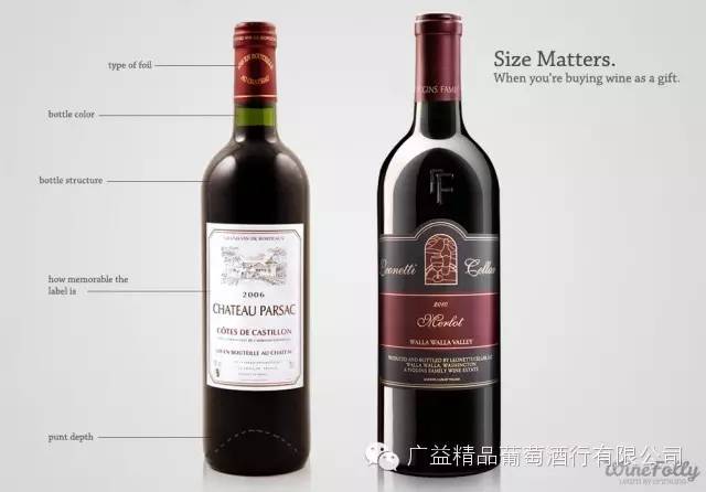 幸运的是,人们都是善变的。事物的重量始终是品质和重要性的一个象征。这世界上有很多葡萄酒是用小瓶装的,但是它们不适合作为礼物,你可以自己收藏或者与亲密的朋友分享。送礼物的目的就是为了在将礼物递送到对方手中时能看到对方喜悦的表情。在送出每一份礼物的时候,我所期待的是对方说“哇,太棒了!”而不是“谢谢,不过这里面是什么?”。当然这并不代表你只需要挑选瓶子的大小而不在乎品质的好坏,品质还是很重要的,但是表面的细节和特征同样重要。