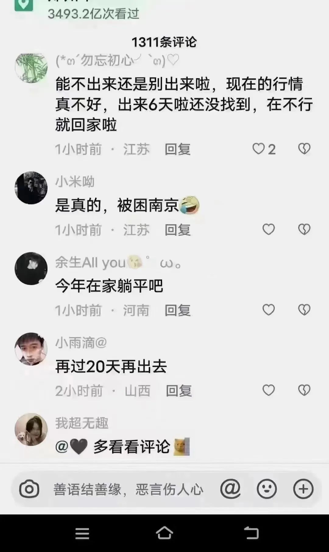 ⏰目前不是武汉市场这样,是全国各地都没有企业要人,全国各地大量的人滞留